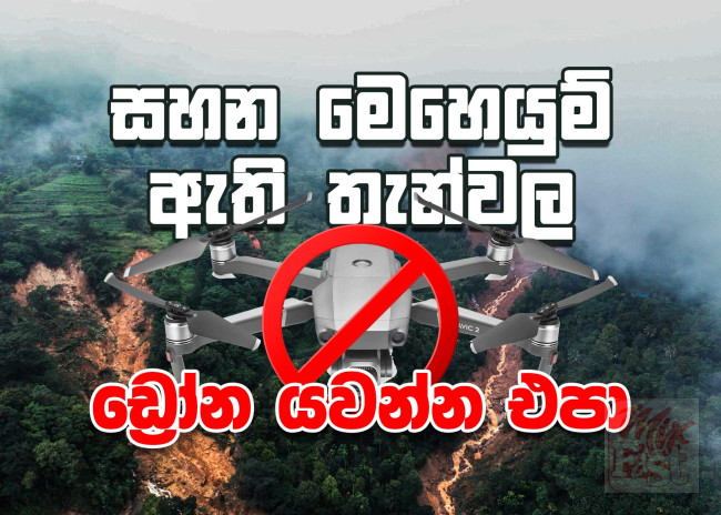 සහන මෙහෙයුම්වල නිරත වන ප්රදේශවල, ඩ්රෝන යානා ක්රියාත්මක කිරීමෙන් වළකින ලෙස ශ්රී ලංකා ගුවන් හමුදාව ඉල්ලීමක් කරයි.