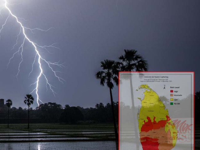 ප්රබල අකුණු පිළිබඳව අවවාදාත්මක නිවේදනයයක් කාලගුණ විද්යා දෙපාර්තමේන්තුව විසින් නිකුත් කර තිබේ.